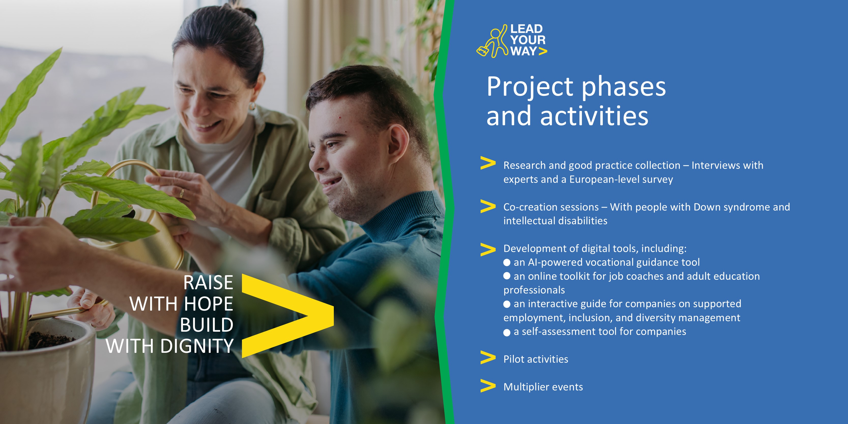 The 'Lead Your Way' (LYW) project aims to reduce the employment gap experienced by individuals with Down syndrome and intellectual disabilities (DS/ID) by facilitating their inclusion in the open labour market through the application of supported employment techniques and a strategic use of digital tools.